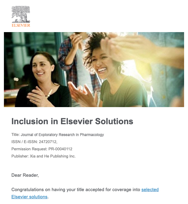 Journal of Exploratory Research in Pharmacology (JERP, eISSN: 2572-5505) was officially informed of its acceptance for coverage in Embase. We sincerely thank our editors-in-chief, editorial board members, peer reviewers, authors and readers for their invaluable support and continuous attention.